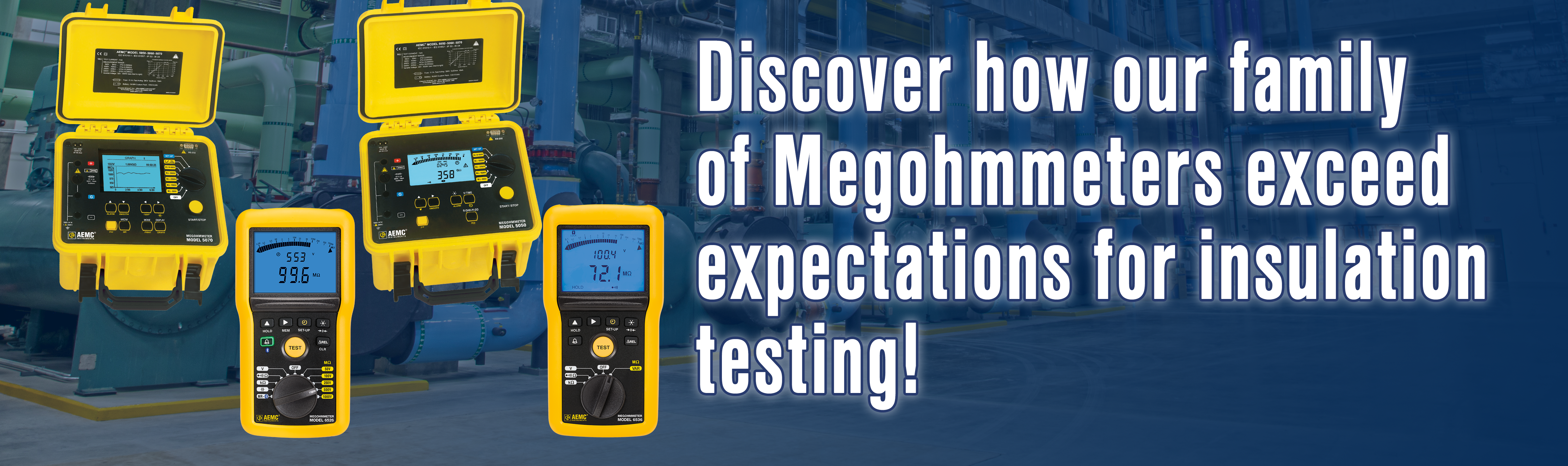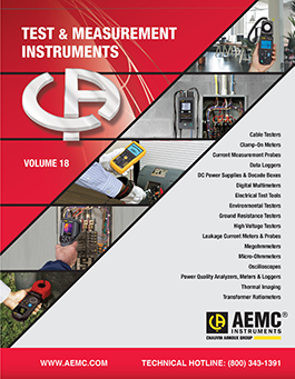 AEMC Instruments manufacturers electrical test & measurement instruments including megohmmeters, ground testers, clamp-on meters, current measurement probes, fall-of-potential testers, insulation testers, clamp-on meters, digital multimeters, DMMs, data loggers, power analyzers, power meters, power loggers, harmonic meters, micro-ohmmeters, ratiometers, environmental testers, lightmeters, test tools.