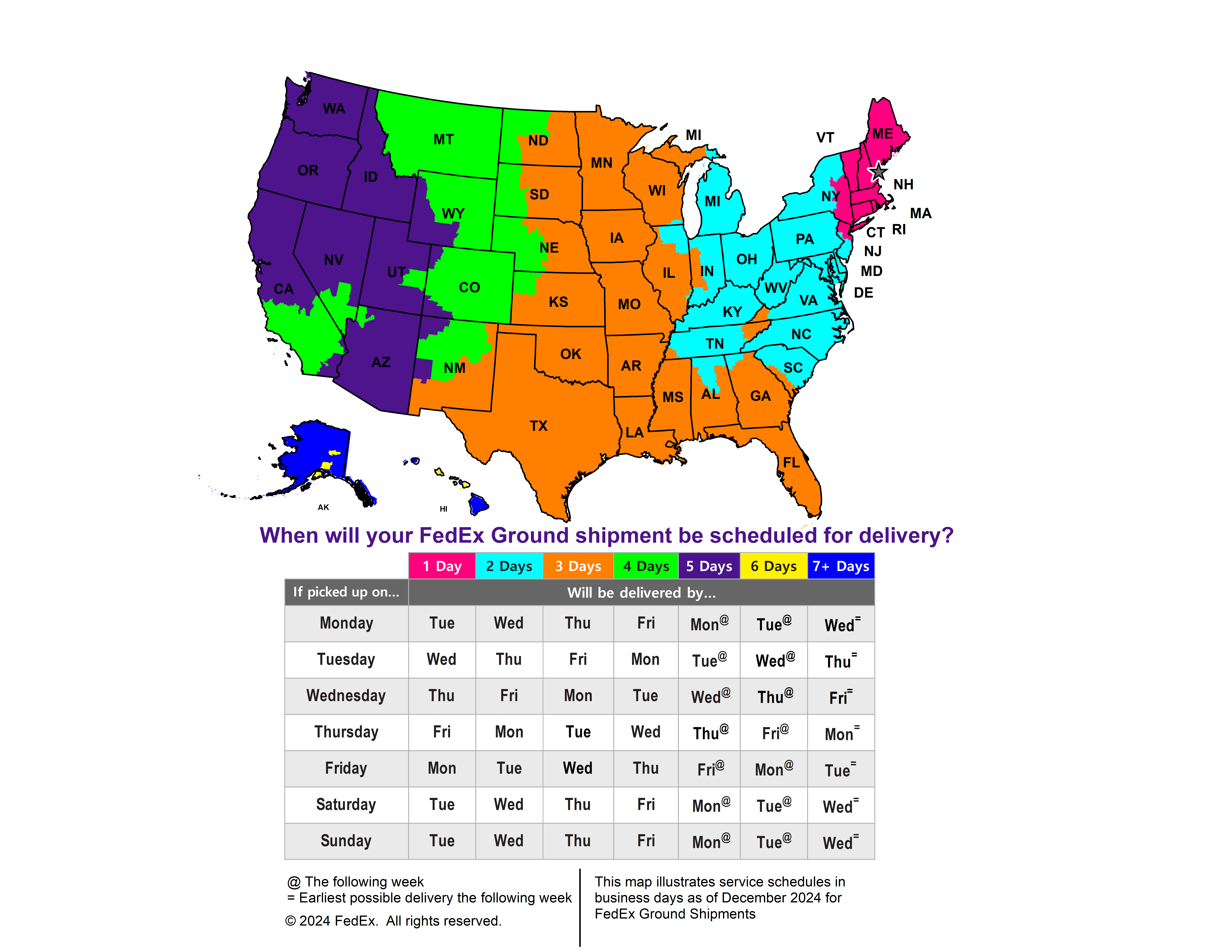 All orders are shipped directly from our factory in Dover NH (EST). Orders that are placed after 1pm are not guaranteed for overnight delivery.